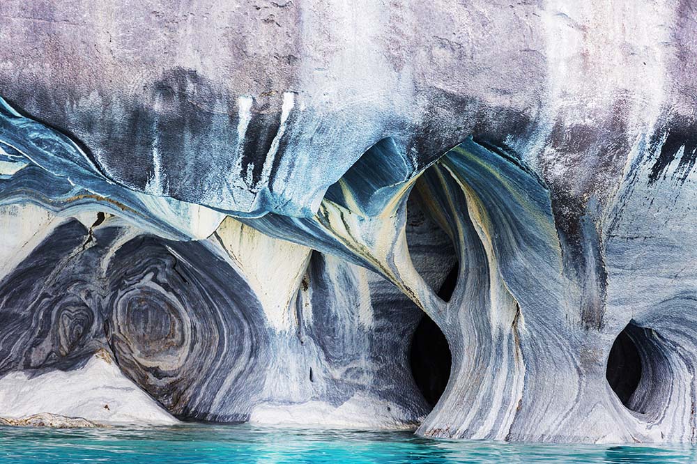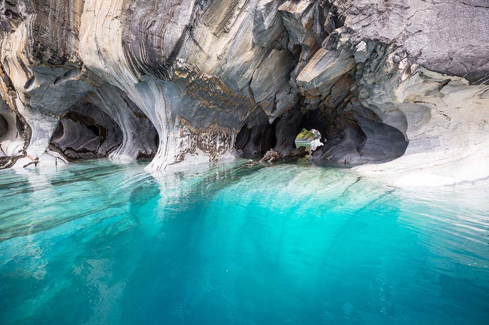 Natural wonders: General Carrera Lake showcases the world-famous Marble Caves, where tourists explore intricate limestone formations by kayak or small boat. The caves create a magnificent light show as water laps the walls, displaying navy blue hues in spring that transform to pink, white, and cobalt blue when glaciers melt.