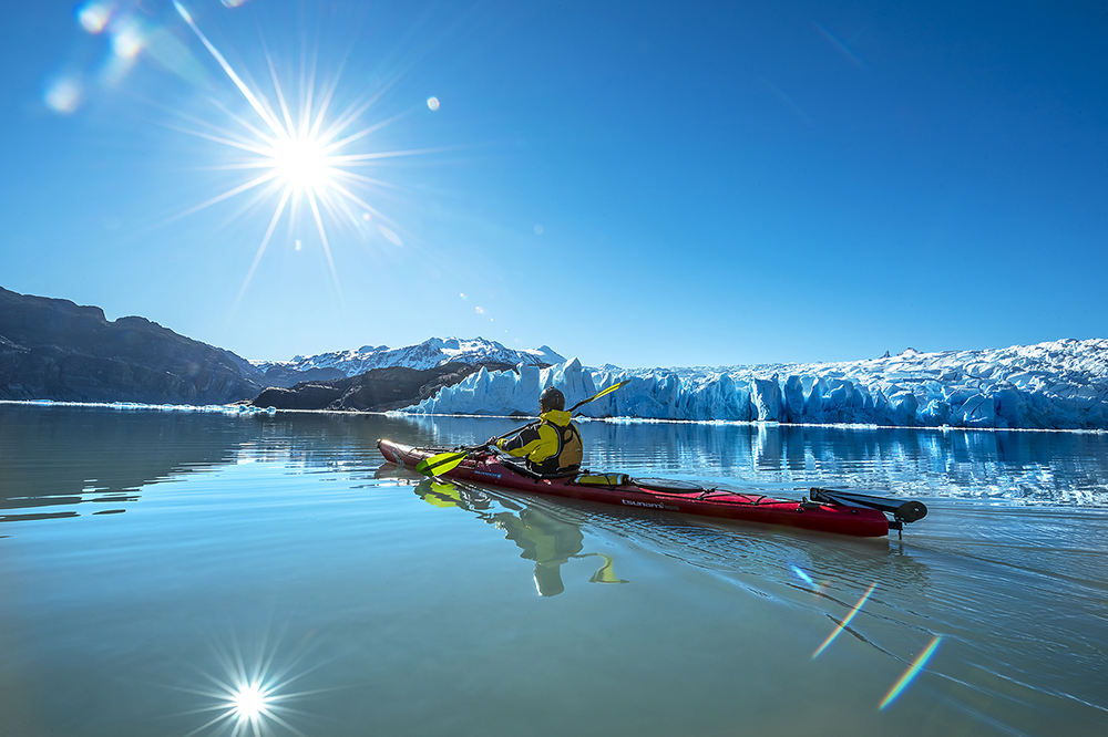 • Lago Grey – Located within Torres del Paine, this lake provides one of Chile’s most impressive postcards. Its deep grey waters, over 500 meters deep, are covered with ice sediment and massive floating icebergs from the Southern Ice Fields, creating breathtaking kayaking opportunities