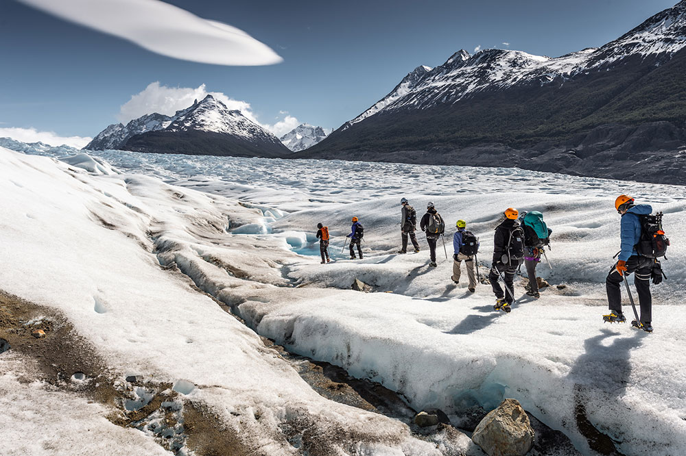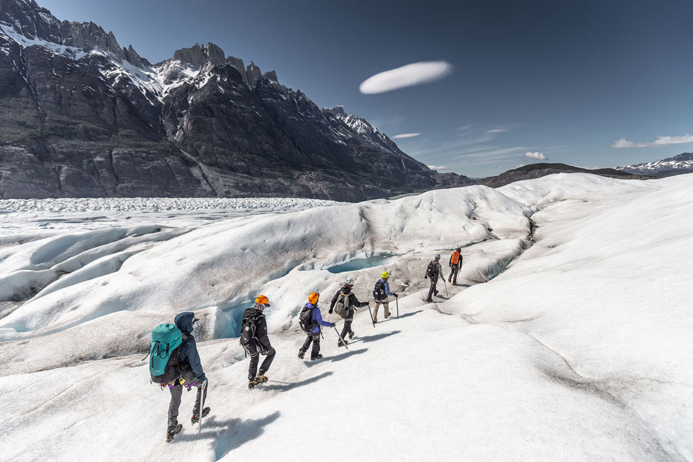 Upon arrival at the basecamp, our guides will provide an introductory briefing about the route, the duration of the tour, and ensure all equipment is properly adjusted for each participant. Afterward, a 15-minute speed boat ride will take us to the west side of the Grey Glacier. Upon arrival, we disembark on the glacier island (nunatak) and hike for about 20-minutes until we reach the ice. Before stepping onto the glacier, the guide will conduct a safety briefing, explaining the techniques for moving on the ice and the correct use of equipment. Once the briefing is complete, we begin our exploration of Grey Glacier, which lasts approximately 3 hours. Along the way, you’ll marvel at cracks, rivers, lagoons, and tunnels in stunning shades of blue. After our adventure on the glacier, we return by zodiac boat to the basecamp. Dinner and night at Grey lodge. (L/D)