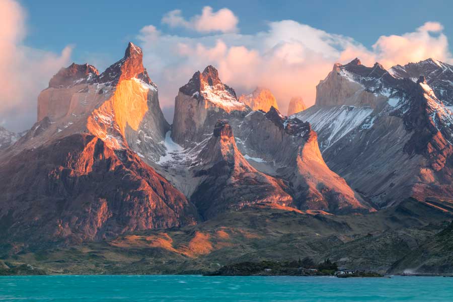 We trek along the shores of Lake Nordenskjöld, passing beneath the hanging glaciers of Mount Almirante Nieto, on our way to Hostería Las Torres. After 5–6 hours of hiking, we arrive at the parking area where our van awaits. From there, we transfer back to Puerto Natales for a farewell dinner and overnight stay at Hotel Natalino or similar. (B/L/D)