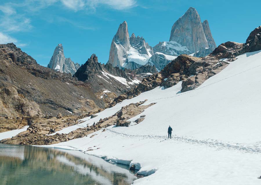 After breakfast, we’ll transfer by private vehicle to Hostería El Pilar. From there, we start our hike through a Patagonian lenga forest alongside the Blanco River, stopping to learn about local ora and fauna. After about an hour, we’ll reach the Piedras Blancas Glacier viewpoint a perfect spot for photos and to observe the glacier’s retreat over the years. Continuing towards Poincenot Camp, we’ll enjoy stunning views of the Fitz Roy massif, crossing the Blanco River bridge to reach the trail’s nal ascent to Laguna de los Tres.