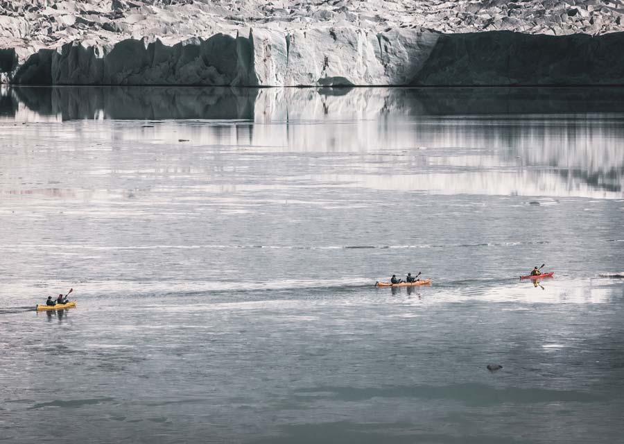 A short walk brings us to Bigfoot Patagonia’s basecamp on Lake Grey’s northeast shore. After a safety brieng and gear intro, we carry the kayaks to the water and begin paddling among oating icebergs. We then head toward the eastern face of Grey Glacier, with a chance to get closer if conditions allow. Return paddle to base. Dinner and overnight at Grey Lodge. (B/L/D)